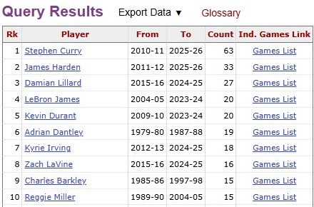 据统计,杜兰特生涯21次单场砍下至少35分且真实命中率80%+,超越詹姆斯(20次)成锋线第一。