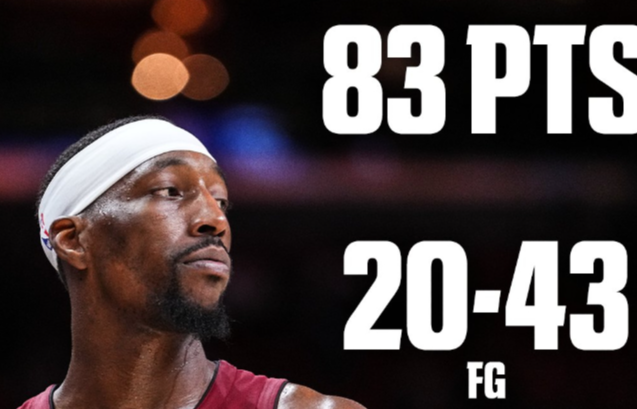 今天的比赛中,热火球员阿德巴约全场43投20中,罚球43罚36中,狂砍83分9篮板3助攻,不仅刷新个人得分记录,也刷新科比的81分,成为NBA历史第二高得分记录。